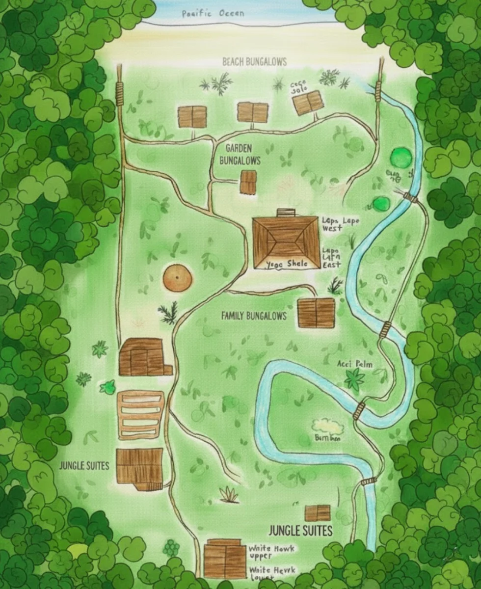 Invite your community to practice where the jungle meets the sea. Our intimate eco‑lodge offers a serene, inspiring setting for transformational retreats — easy to host, unforgettable to experience.
