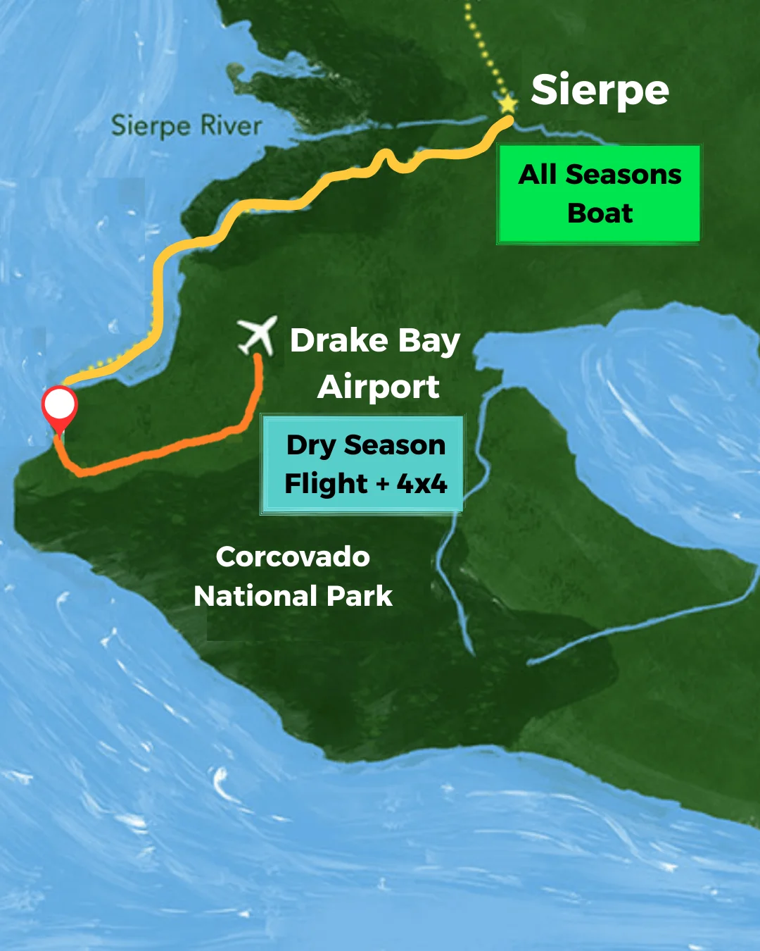For a budget-friendly journey from San José, take the Tracopa public bus departing at 8:00 AM. This approximately 8-hour ride is perfectly timed to connect with our afternoon boat transfer from Sierpe. Prefer a more direct route? We can also arrange a comfortable shuttle service directly to Sierpe for your convenience. Just let us know your needs!