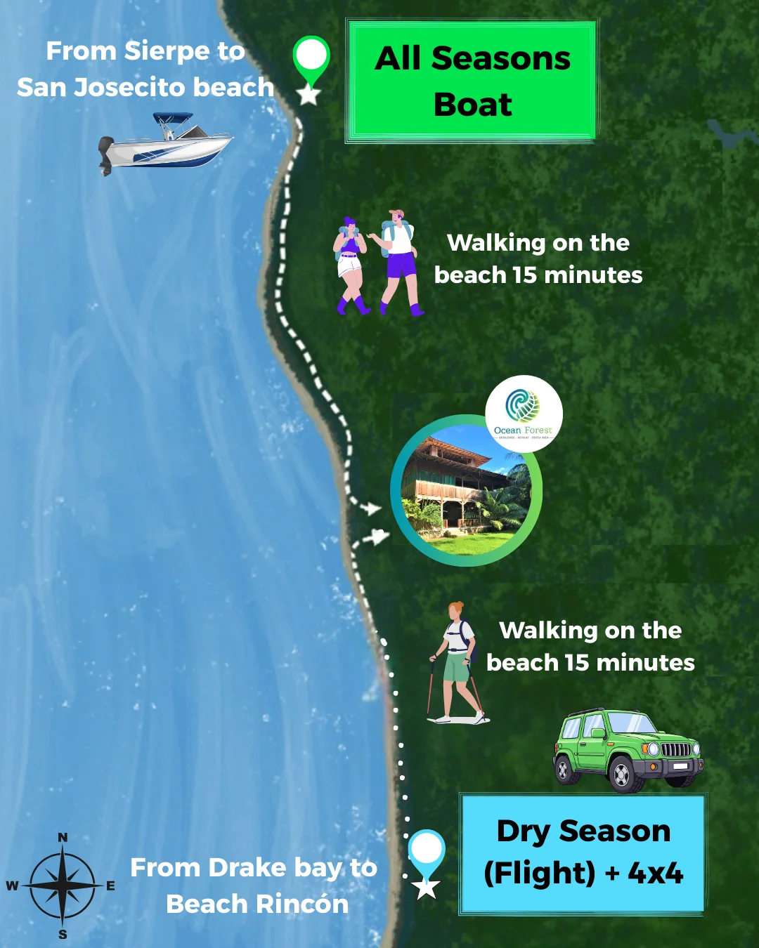 Your journey to Ocean Forest Ecolodge is part of the adventure — and the reward is extraordinary. For a smooth and safe arrival, please note: